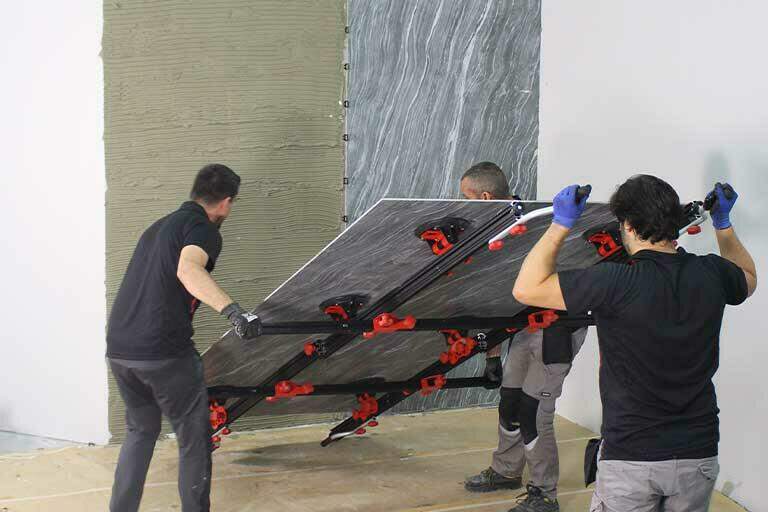 Las baldosas cerámicas que encontramos en el mercado van creciendo, siendo cada vez más y más grandes. Por ello, las tendencias del mercado implican cada vez mayor manipulación e instalación a través de técnicas como el doble encolado y peinado.
