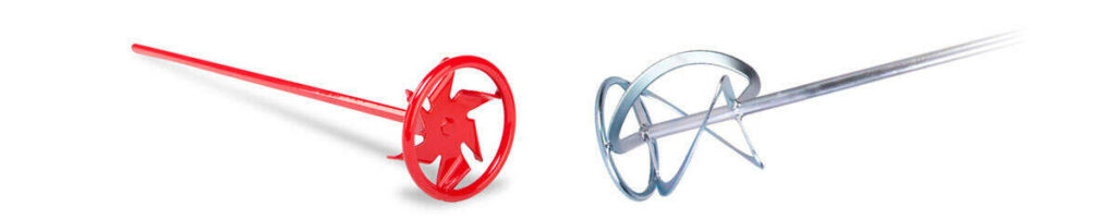 Perché due strumenti per la stessa funzione? Semplicemente perché l’elica viene utilizzata per i materiali a più alta densità: adesivi per piastrelle, malta, cemento, ecc. Mentre le pale sono utilizzate per materiali meno densi come vernici, gesso o resine.