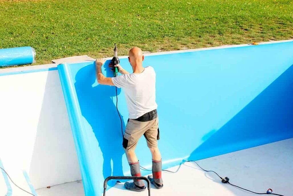 Se abbiamo una piscina prefabbricata, un’opzione più economica della gresite è il telo in PVC.
