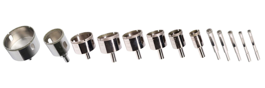 - Brocas de diamante para corte húmido: Para maior qualidade de acabamento, sem pó no ambiente e use uma ferramenta simples como berbequim