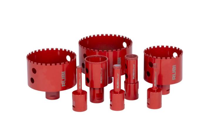 - Brocas diamantadas de corte a seco: para uma velocidade de perfuração mais elevada e sem necessidade de usar água, usando uma ferramenta como a rebarbadora.